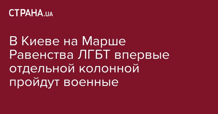 На Марше Равенства, который будет проходить в рамках Киевпрайда-2019 23 июня, будет отдельная колонна ЛГБТ-военных. Об этом пишет Громадське