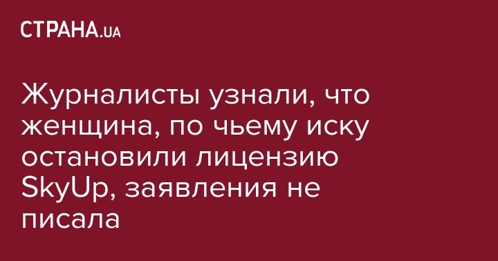 Журналисты узнали, что женщина, по чьему иску остановили лицензию SkyUp, заявления не писала