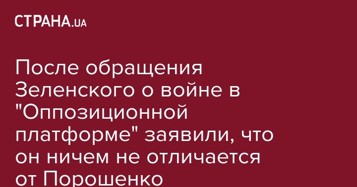 После обращения Зеленского о войне в "Оппозиционной платформе" заявили, что он ничем не отличается от Порошенко
