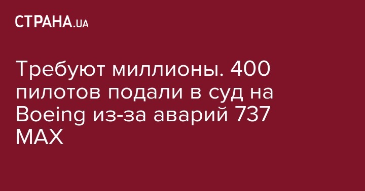 Требуют миллионы. 400 пилотов подали в суд на Boeing из-за аварий 737 MAX
