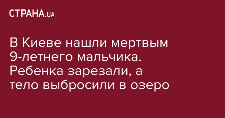В Киеве нашли мертвым 9-летнего мальчика. Ребенка зарезали, а тело выбросили в озеро