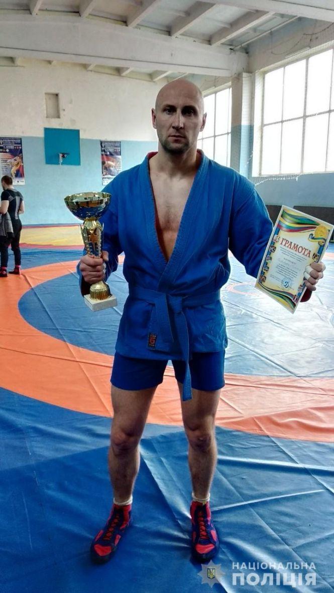 Оперативник Сергей Пивовар выиграл первенство области по самбо в весовой категории до 100 кг. Фото: Нацполиция Украины