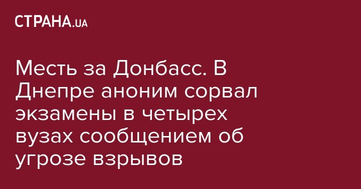 В Днепре злоумышленники угрожают взрывом сразу четырех высших учебных заведений - Национальной металлургической академии Украины, Университета Нобеля, Днепровского национального университета железнодорожного транспорта и Университета таможенного дела и финансов. Анонимные письма о заминировании пришли на электронные почтовые ящики вузов в понедельник, 24 июня около 08:30. Об этом сообщает "Информатор".