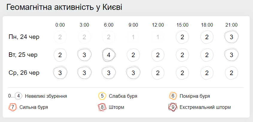 Геомагнитная обстановка в Украине 25 июня ожидается относительно спокойная. В течение суток ожидается небольшие возмущения.