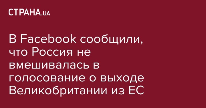 В Facebook признали, что нет "абсолютно никаких доказательств" того, что внешние силы, такие как Россия, через соцсеть оказывали влияние на голосование о выходе Великобритании из Европейского союза.