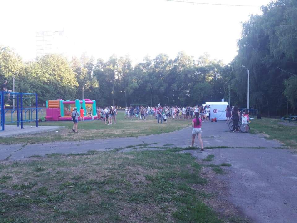 Пока полиция изымала коробки с лекарствами на Северной Салтовке, в этом же районе установили палатки "Фонда Грановского". Детям раздавали бесплатную сладкую вату, воздушные шары и приглашали на батут.