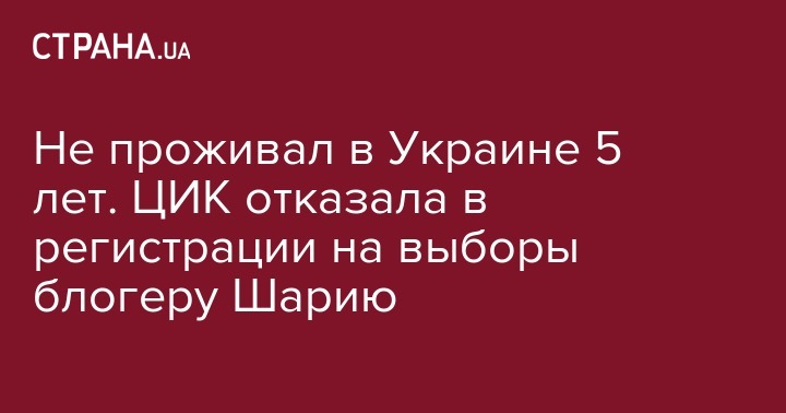 Центральная избирательная комиссия Украины (ЦИК) отказала в регистрации на досрочные выборы в Раду украинскому журналисту и известному блогеру Анатолию Шарию, на том основании, что он последние 5 лет проживает за рубежом.