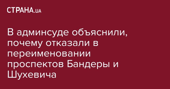 Окружной административный суд города Киева сообщил, что проспекты Московский и Генерала Ватутина были переименованы в Степана Бандеры и Романа Шухевича с нарушением процедуры. Поэтому суд отменил решение Киеврады о переименовании. Об этом говорится в пояснении суда, обнародованном 26 июня.