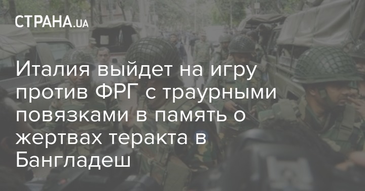 Сегодня, 2 июля, футболисты сборной Италии сыграют в траурных повязках в матче четвертьфинала чемпионата Европы – 2016 против команды Германии в память о жертвах теракта в Бангладеш, сообщает Football Italia.