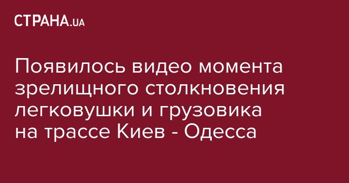 Появилось видео момента зрелищного столкновения легковушки и грузовика на трассе Киев - Одесса