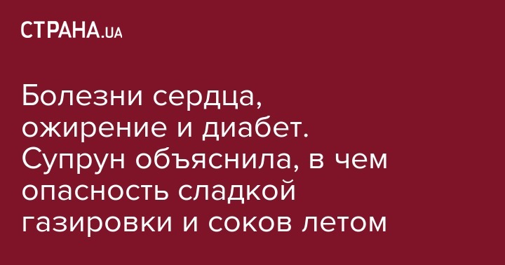 В сладкой газировке, соках и энергетиках содержится большое количества сахара, что может привести к сердечно-сосудистым болезням, ожирению или диабету. Об этом на своей странице в Facebook сообщила исполняющая обязанности министра здравоохранения Украины Ульяна Супрун.
