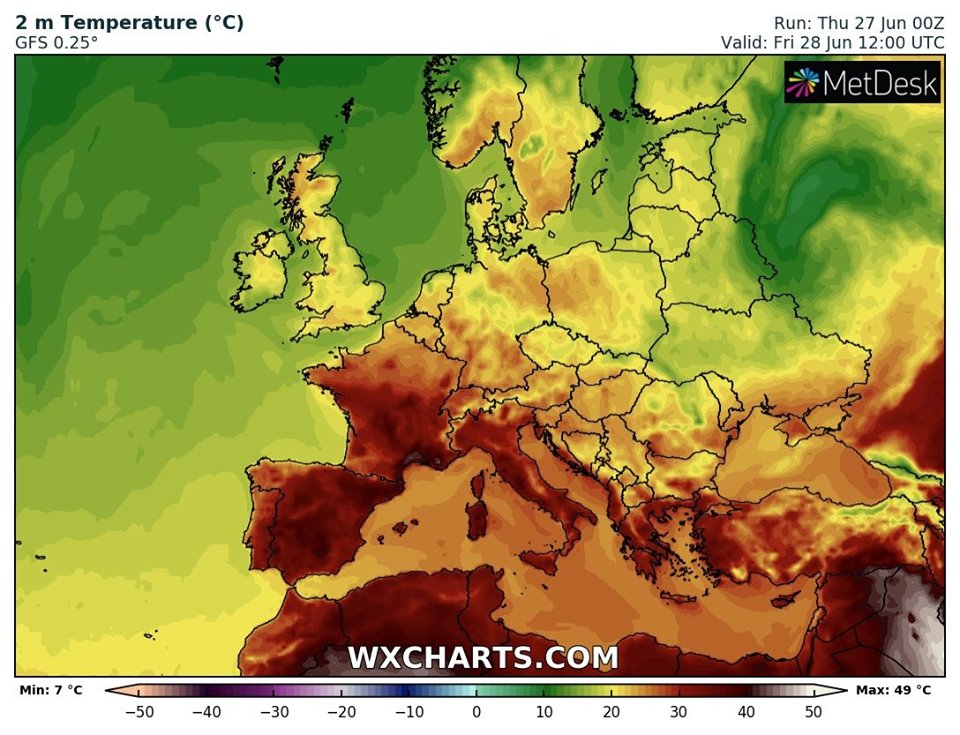 Напомним, что Европу накрыла экстремальная жара, ожидается до +45 градусов.