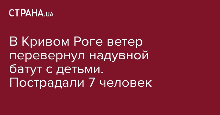 7 человек, в том числе 5 детей, получили травмы в результате несчастного случая в Кривом Роге (Днепропетровская область), где надувной батут перевернулся из-за сильного порыва ветра. Уточняется, что инцидент произошел в субботу, 29 июня, около 19:30 в микрорайоне Восточный-2, сообщает "Первый Криворожский".