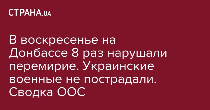 В воскресенье на Донбассе 8 раз нарушали перемирие. Украинские военные не пострадали. Сводка ООС