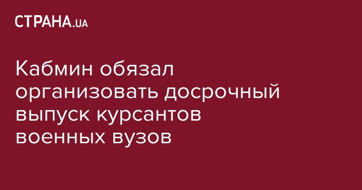 Кабинет министров Украины обязал профильные министерства и ведомства досрочно выпустить курсантов и слушателей выпускных курсов высших военных учебных заведений в 2016 году, передает "Интерфакс-Украина".