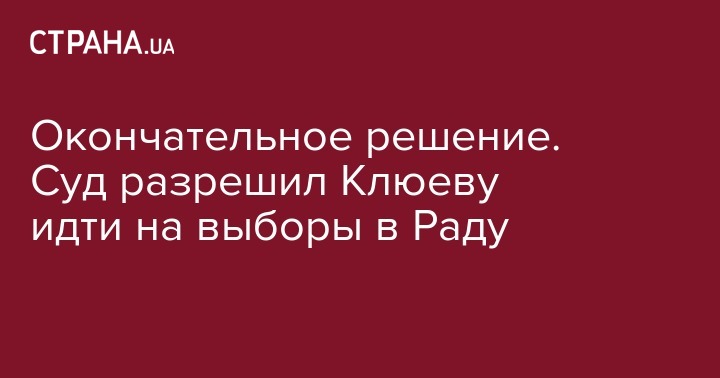 Окончательное решение. Суд разрешил Клюеву идти на выборы в Раду