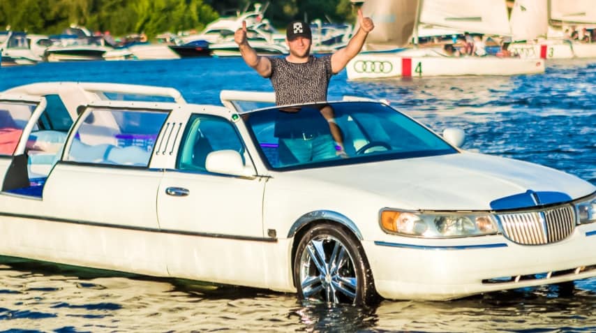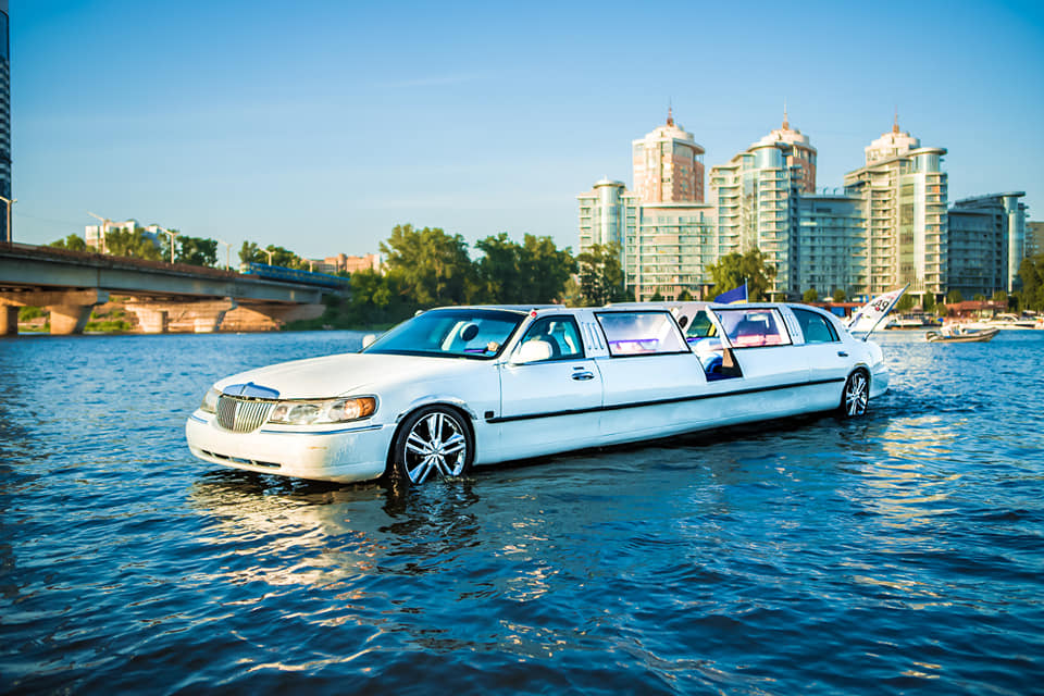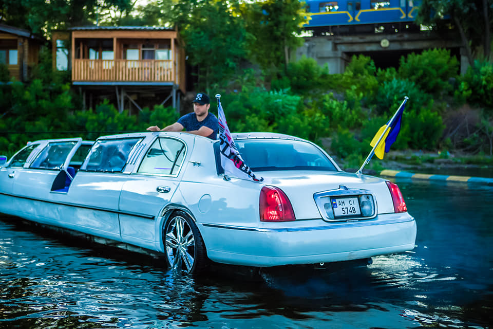 В Киеве на Днепр спустили необычное плавсредство, корпус которого представляет собой белый лимузин. По словам его владельца, курсирующий по Днепру лимузин пока не имеет аналогов в мире. Вероятно поэтому поездка на нем является недешевым удовольствием, пишет "Сегодня".
