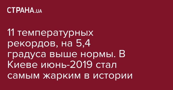 По данным наблюдений метеостанции, нынешний июнь в Киеве стал самым теплым с 1881 года. За месяц было 14 дней с температурой выше +30 градусов и зафиксировано 11 температурных рекордов. За полгода отклонения температуры воздуха от климатической нормы составило 3,2 градуса.