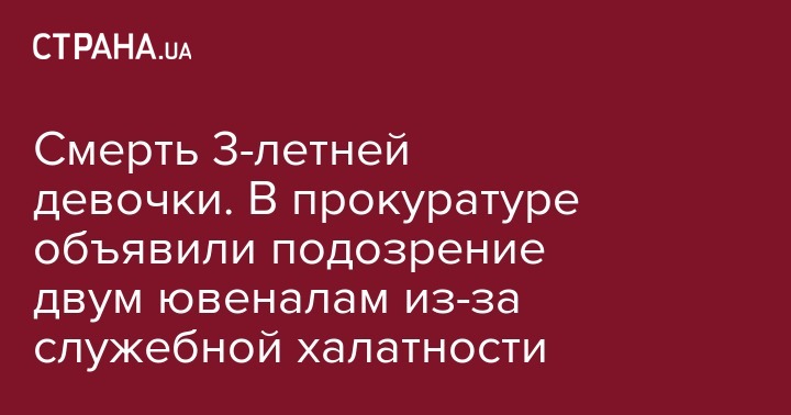 В прокуратуре объявили подозрение двум инспекторам ювенальной превенции в служебной халатности, которая привела к смерти 3-летней девочки в городе Купянск. Об этом сообщает пресс-служба прокуратуры Харьковской области.