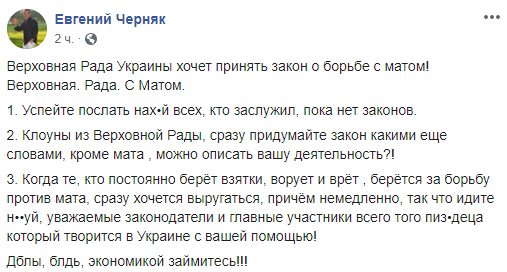 Дблы, блдь, экономикой займитесь!!!" - написал Черняк.