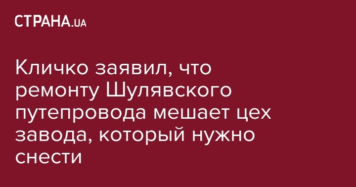 "Если мост построят, а потом придется сносить цех, это сможет увеличить и смету работ, и затягивать процесс строительства путепровода", - сказал мэр Киева и добавил, что сейчас на Шулявском путепроводе продолжаются активные работы, уже полностью разобрали старый мост и собрали первый прогон нового моста.