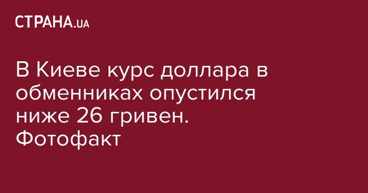 В Киеве курс доллара в обменниках опустился ниже 26 гривен. Фотофакт