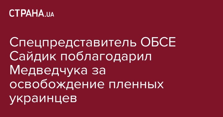 Спецпредставитель действующего председателя ОБСЕ в Украине и в Трехсторонней контактной группе посол Мартин Сайдик оценил освобождение четырех украинцев, которое состоялось благодаря переговорам, которые провел один из лидеров партии "Оппозиционная платформа За жизнь" Виктор Медведчук.
