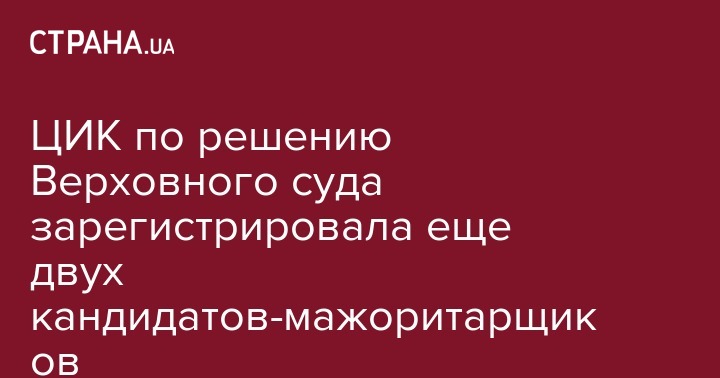 ЦИК во исполнение решений Верховного Суда зарегистрировала еще двух кандидатов в народные депутаты в одномандатных избирательных округах во время внеочередных парламентских выборов. Об этом сообщает пресс-служба комиссии в четверг.