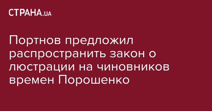 Экс-заместитель главы администрации Виктора Януковича, юрист Андрей Портнов предлагает расширить закон о люстрации, распространив его на всех чиновников, которые занимали должности во времена режима бывшего президента Петра Порошенко. Об этом Портнов заявил на своей странице в соцсети Facebook.