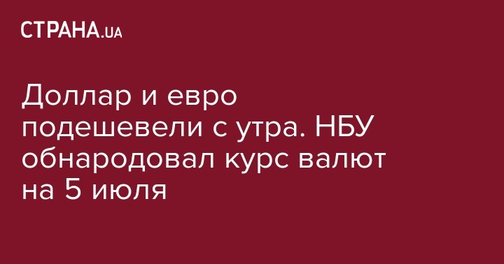 На утро 5 июля Нацбанк обнародовал официальный курс валют, в котором доллар подешевел на 17 копеек, по сравнению с предыдущим днем, а евро - на 21 копейку.