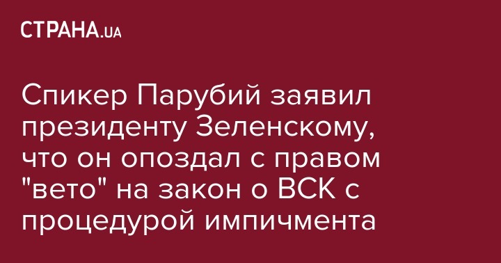 В пятницу, 5 июля, спикер Рады Андрей Парубий заявил президенту Украины Владимиру Зеленскому, что он больше не имеет права ветировать закон о временных следственных комиссиях, в котором содержатся положения о процедуре его импичмента.