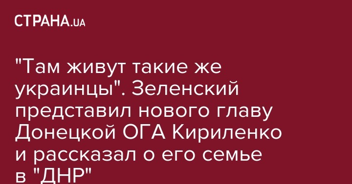 В пятницу, 5 июля, президент Украины Владимир Зеленский в Краматорске представил нового главу Донецкой ОГА Павла Кириленко и заявил, что члены его семьи живут на неподконтрольной территории Донецкой области. Об этом пишет "Интерфакс-Украина".