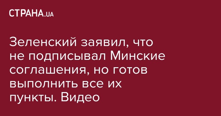 "Ни моя команда, ни я не подписывали этот "Минск", но мы готовы идти по пунктам всех минских договоренностей для того, чтобы наконец у нас был мир", - сказал президент Украины Владимир Зеленский.