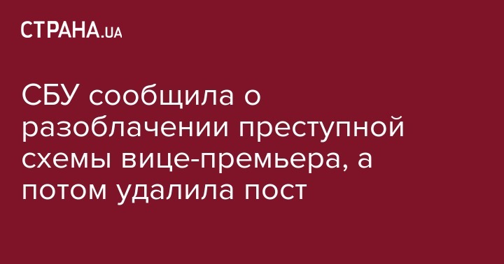 СБУ сообщила о разоблачении преступной схемы вице-премьера, а потом удалила пост