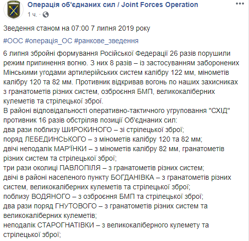 По данным украинской разведки 6 июля трое участников незаконных формирований ответным огнем были уничтожены.
