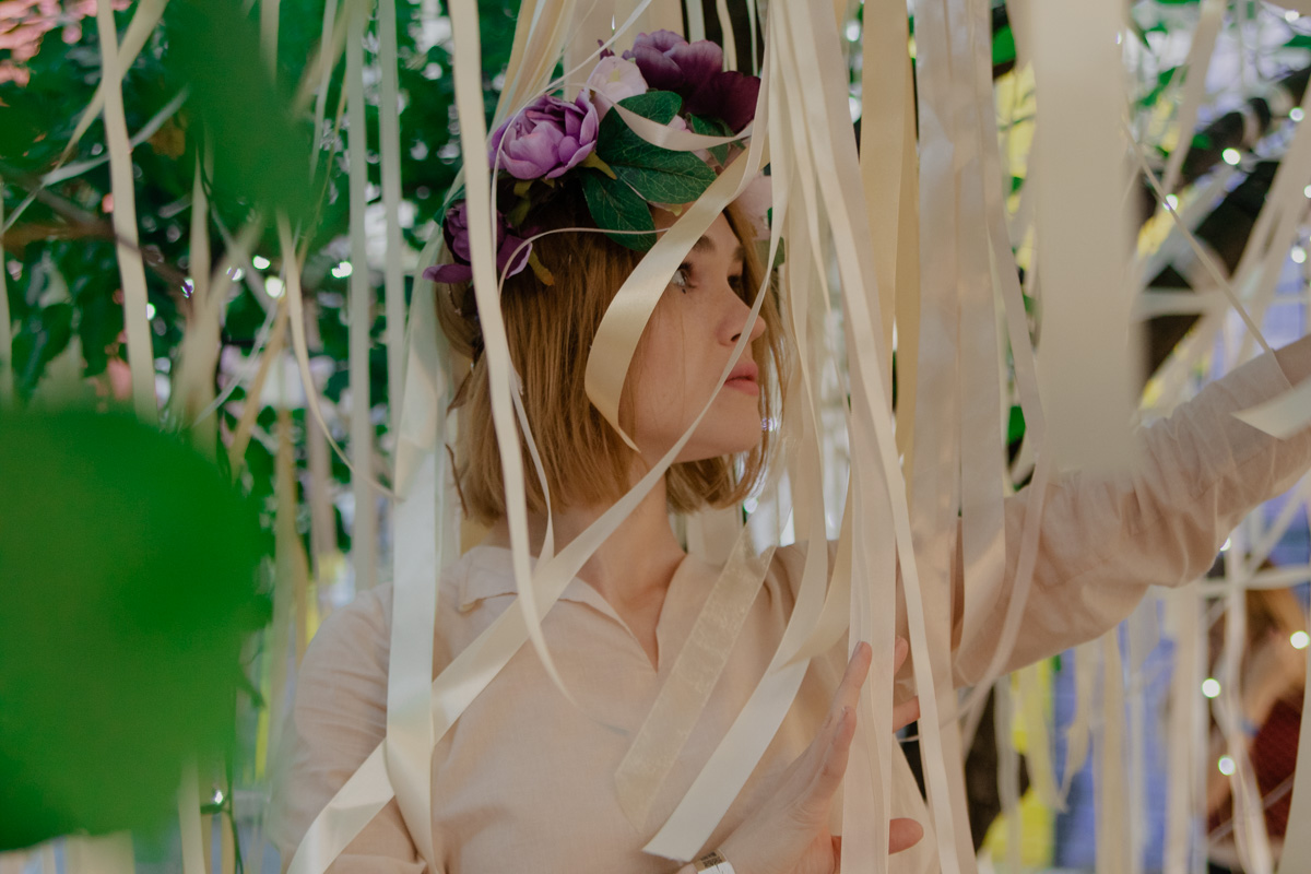 Присутствующие на празднике выстраивались в очереди к гадалке, другие - за вкусной едой на стогах сена, а кто-то в это же время проходил увлекательный и загадочный квест в поисках легендарного цветка папоротника, который приносит счастье и любовь. На празднике можно было сделать красочные фото в пяти фотозонах, которые стали частью лабиринта. А после оказаться в торговом павильоне с интересными аксессуарами, одеждой, картинами и косметикой.По обе стороны локации размещались сцены, где гости могли сидеть на траве или пуфах, и даже качаться на гамаках.