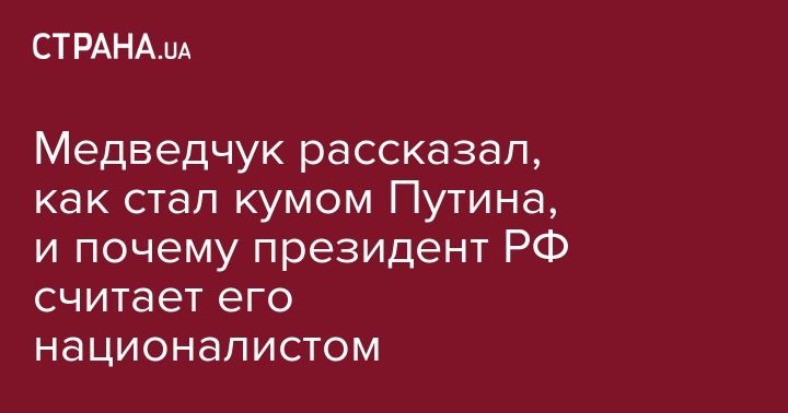 Медведчук рассказал, как стал кумом Путина, и почему президент РФ считает его националистом