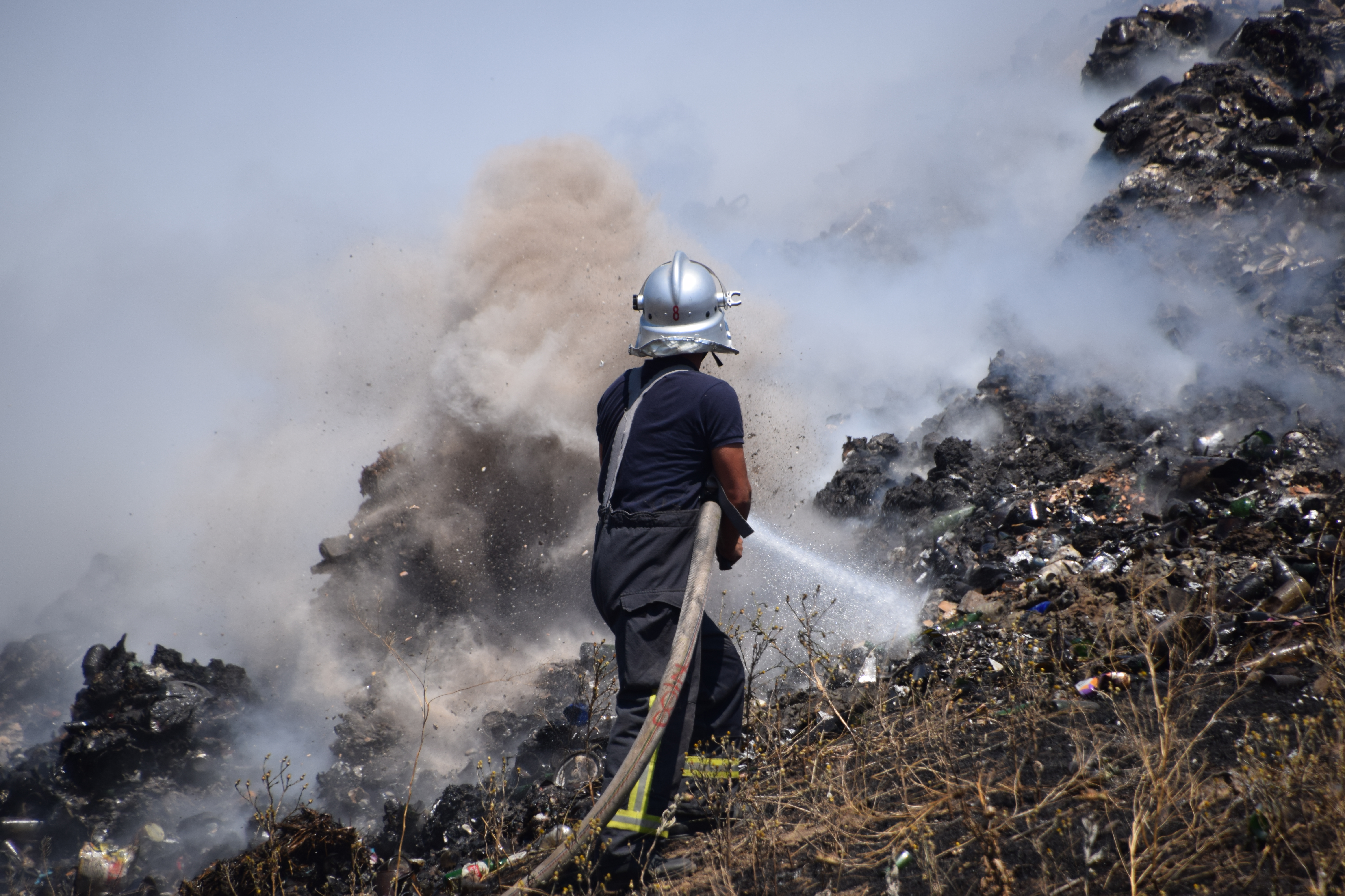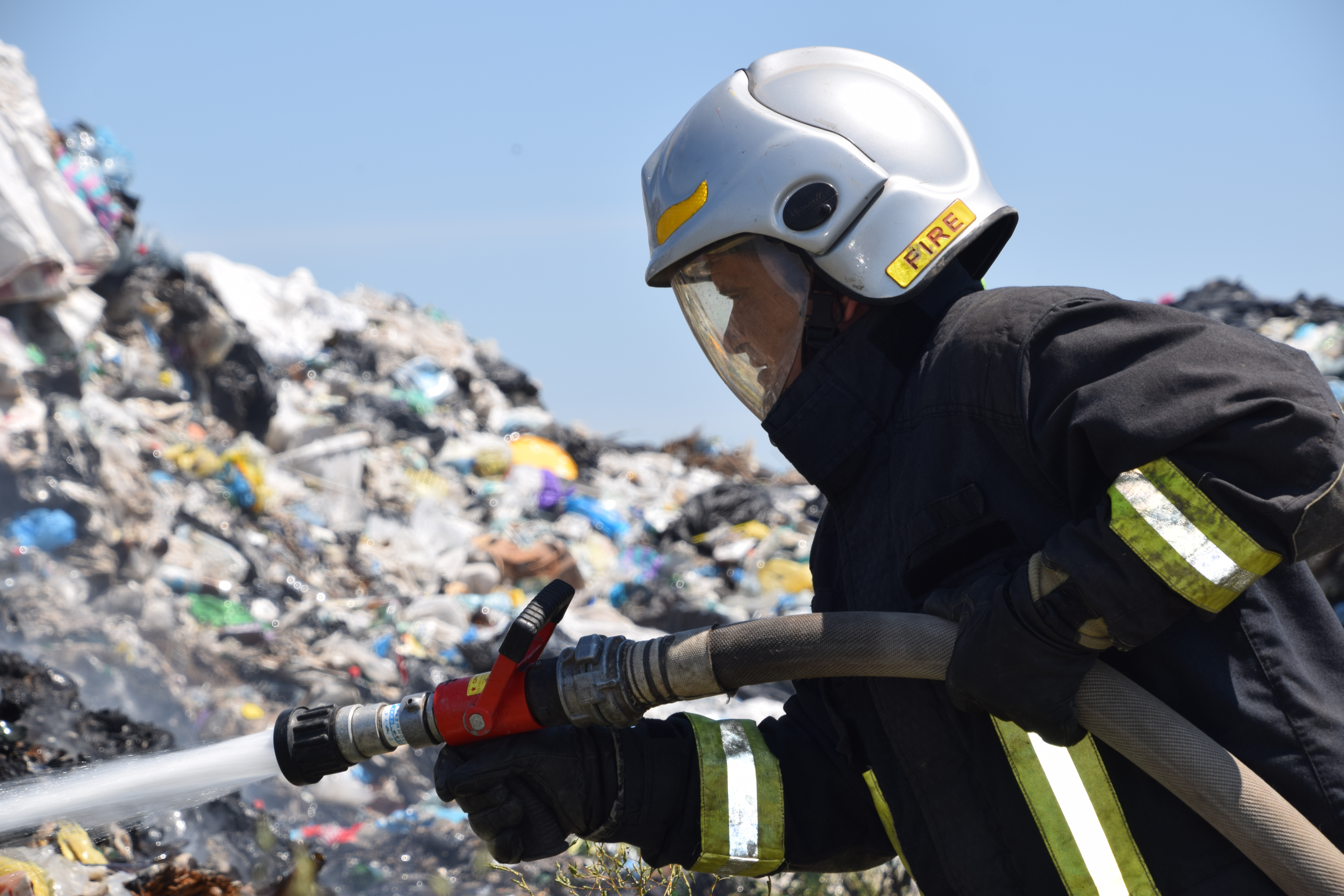 Борьба с огнем на полигоне отходов. Фото: mk.dsns.gov.ua