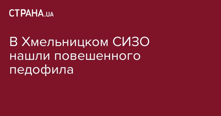 В СИЗО города Хмельницкий повесился мужчина, подозреваемый в изнасиловании 5-летнего ребенка.