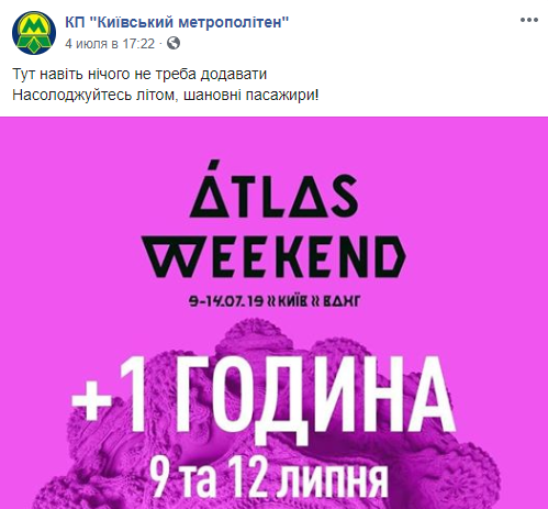 9 и 12 июля киевский метрополитен продлил работу на час. Если обычно станция метро на ВДНХ закрывается в 23:55, в эти два дня можно успеть на метро - до 00:55. Это сделают, чтобы посетителям фестиваля было удобнее добираться домой после концерта.