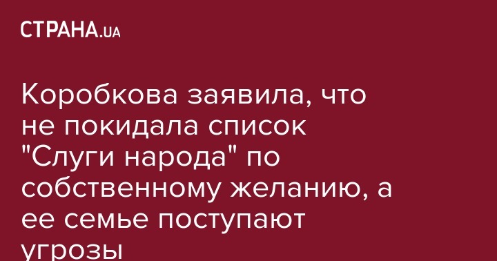Коробкова заявила, что не покидала список "Слуги народа" по собственному желанию, а ее семье поступают угрозы