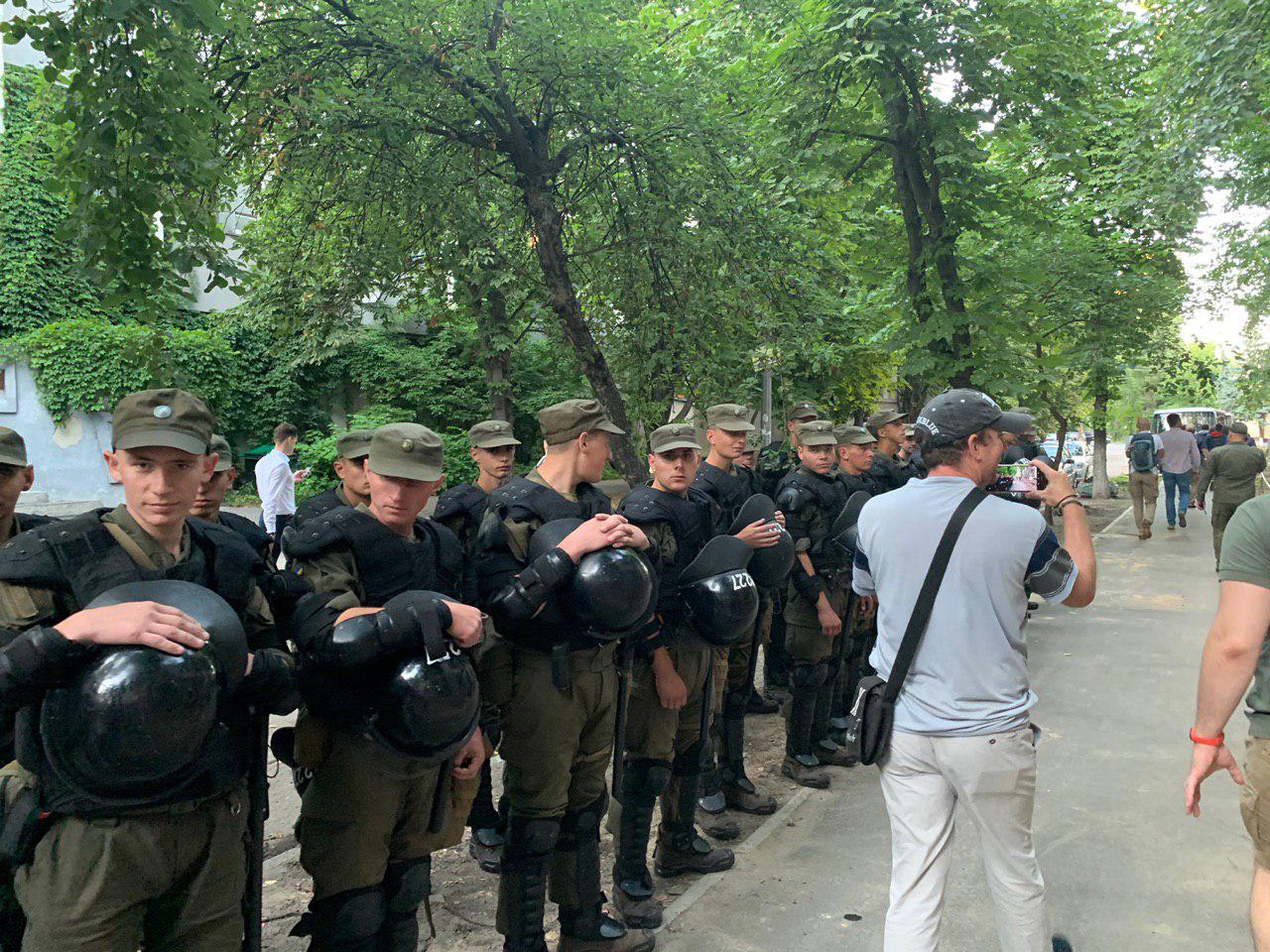 Сейчас территория телеканала оцеплена сотрудниками полиции и Национальной гвардии – всего около 200 правоохранителей. Также на прилегающих улицах размещены автобусы и автозаки правоохранителей. На месте присутствует начальник полиции Киева Андрей Крищенко.