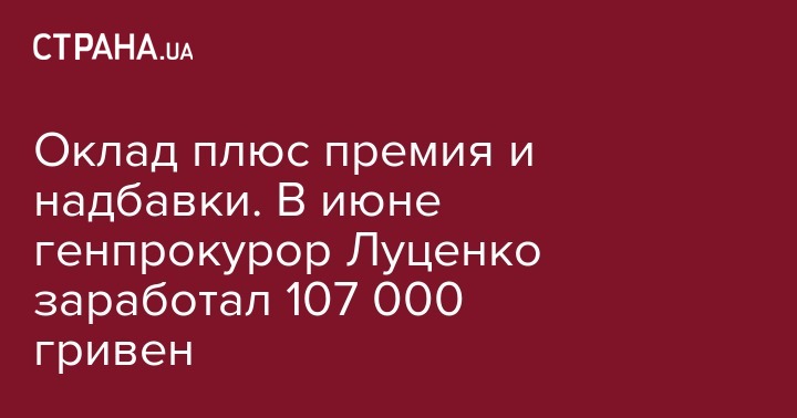 В июне генеральный прокурор Украины Юрий Луценко заработал ставку и еще дополнительные 70 000 гривен. Об этом пишут "Украинские Новости".