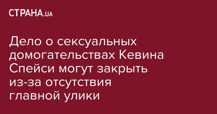 В США могут закрыть дело против обвиняемого в сексуальных домогательствах актера Кевина Спейси из-за отсутствия главой улики. Об этом сообщает телеканал CNN.