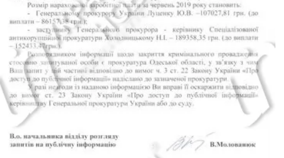 Зарплата указана с учетом надбавок, доплат и премий. Непосредственно должностной оклад замгенпрокурора составил 63 432 гривны.