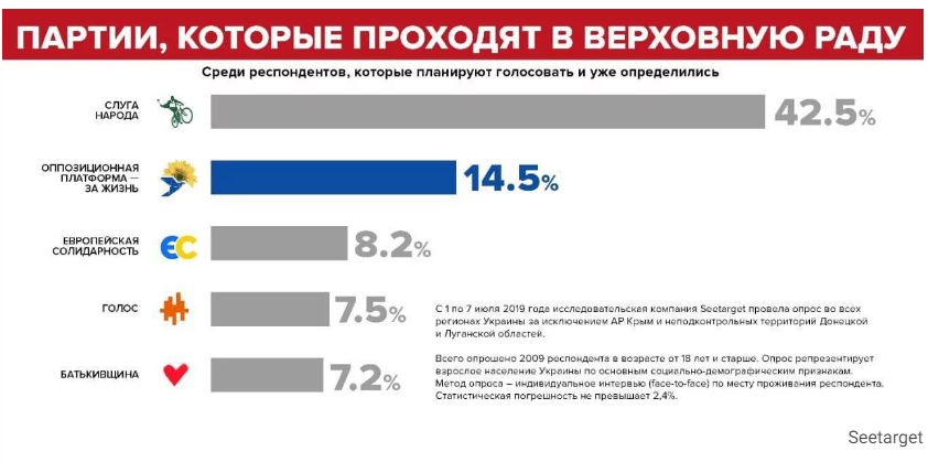 Согласно социологическому исследованию в Раду на внеочередных парламентских выборах 21 июля проходят пять партий. Его провела социологическая компания Seetarget. Об этом сообщает 112-Украина.