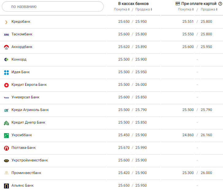А в банках курс подрос на 5 копеек. Средняя цена продажи в рамках 25,75-25,90 грн была в таких банках, как Приватбанк, Пумб, Укргазбанк, Альфа банк, УкрСибБанк, Универсал банк, Креди Агриколь банк, ОТП банк.