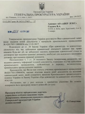 Ответ ГПУ был опубликован в рамках развернутого интервью Виталия Сердюка профессиональному изданию Юридическая Практика.
