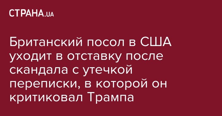 После этого президент США Дональд Трамп отреагировал на утечку переписки посла Великобритании Кима Дэррока, заявив, что Штаты не будут иметь с ним дела