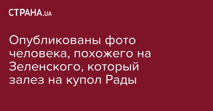 В сети появились снимки человека, похожего на президента Владимира Зеленского, который находится на куполе здания Верховной Рады и что-то снимает на телефон. Фото опубликовал блогер Михаил Голуб в Facebook.